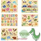 木製パズル 型はめパズル かたはめパズル 積み木 形合わせ 形認識 パズル 英語おもちゃ 5種類シリーズ 男の子 女の子 カラフル プレゼント 71点