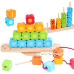 木製パズル ひもとおし 紐通しおもちゃ 数字パズル 英語 積み木 バランスゲーム 指先訓練 色認識 かわいい ひもとおしおもちゃ 男の子 女の子