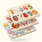 木製パズル 3点セット アルファベット 数字 形状 木のおもちゃ 知育玩具 ABC 英語 計算 数学 色認識 パズル 知育 型はめパズル ちいく玩具 木製玩具 学習玩具 指