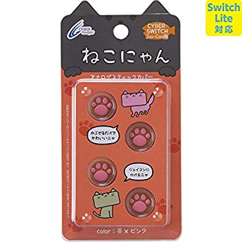 【中古】(未使用・未開封品) 【Switch Lite対応】 CYBER ・ アナログスティックカバー ねこにゃん ( SWITCH Joy-Con 用) 茶Xピンク - Switch bt0tq1u