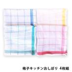 (メール便対応・・3セットまで)布巾 格子 キッチン おしぼりタオル ふきん 4枚組 キッチンタオル/おしぼり/