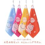 タオル 4枚セット ループ付き うさぎ コットン おしぼりタオル お手拭き 保育園 幼稚園 子ども用 25×25 女の子