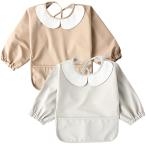 kalavika お食事エプロン 長袖 2枚セット 北欧調 洗える ベビー 離乳食 エプロン 袖付き 食事スタイ 赤ちゃん 女の子 男の子 スモ
