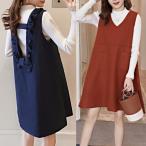 マタニティ 2点セット ワンピース カットソー 長袖 膝上丈 フリル バックリボン 大きいサイズ 2L 3L フレア Aライン お呼ばれ Vネック