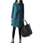 ドレープ aライン チュニックワンピ ワッフル カットソー レディース ワンピース 長袖 緑色(グリーン, M)