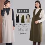 マタニティ 「セットアイテム」Vネックダンボールワンピース×メロウフリルプチハイネックカットソー ジャンパースカートドレス アンサンブル(マタニティ/