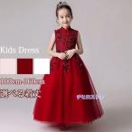 キッズドレス 女の子 子供 ドレス ピアノ発表会 発表会 セレモニー 半袖 ロングドレス 結婚式 子ども レッド コンクール 子供服 フォーマル コンサート 誕生日