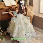 キッズドレス 発表会 結婚式 ワンピース ロング 衣装 女の子 かわいい コンクール 子供ドレス ひなぎく柄 ドレス ピアノ 緑