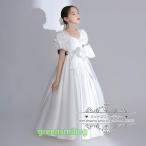 キッズドレス 女の子 子供 ドレス ピアノ発表会 発表会 セレモニー バルーンスリーブ ワンピース 結婚式 子ども フラワーガール リングガール ホワイト ロング