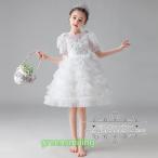 キッズ ドレス 子供ドレス パフスリーブ ミニドレス ワンピース 女の子 ピアノ 発表会 ホワイト 白 子どもドレス リングガール イベント 舞台 ステージ衣装