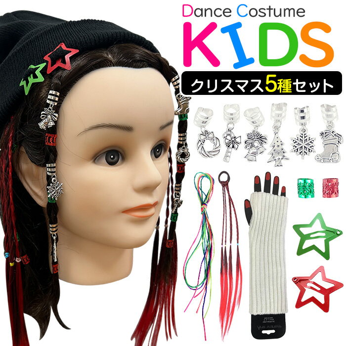 クリスマス お目立ちセット 派手 ヘアアクセサリー5種セット クリスマスリング26個 星ヘアピン25個 ヘア紐20本 ヘアエクステ2本 アームウォーマー 大容量 子供用 子ども キッズ 女の子 カラーアソート ミックスカラー 髪飾り 髪留め ヘアアレンジ お遊戯会 お祭り ダンス