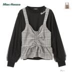 長袖Tシャツ ビスチェ アンサンブル キッズ レイヤード リボン 刺繍 レース ドット チェック ロンT カットソー トップス