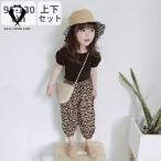 セットアップ 上下セット 2点セット キッズ 子供服 カットソー 半袖 クロップドパンツ ジョガーパンツ パフスリーブ 背中開き 無地 レオパード柄