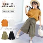 ガウチョパンツ カットソー 半袖 スカーチョ ワイドパンツ スカンツ ボトムス トップス 無地 シンプル 子供 キッズ ジュニア 女の子 女児