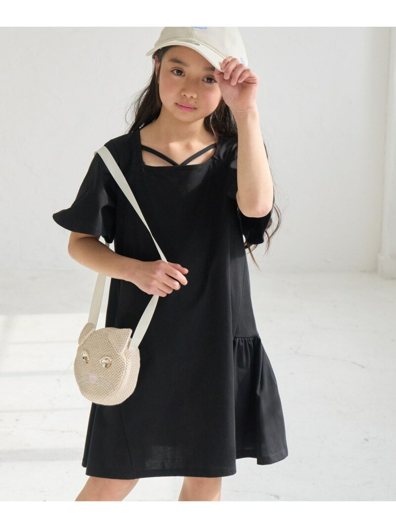 【SALE/31%OFF】ROPE' PICNIC KIDS 【KIDS】デザインネックカットソーワンピース ロペピクニック ワンピース・ドレス ワンピース ブラック ブルー
