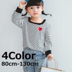 送料無料 カットソー Tシャツ キッズ ベビー 長袖 子供服 ボーダー ハート おしゃれ かわいい 着回し カジュアル お出かけ サイズ豊富 スクエアネック