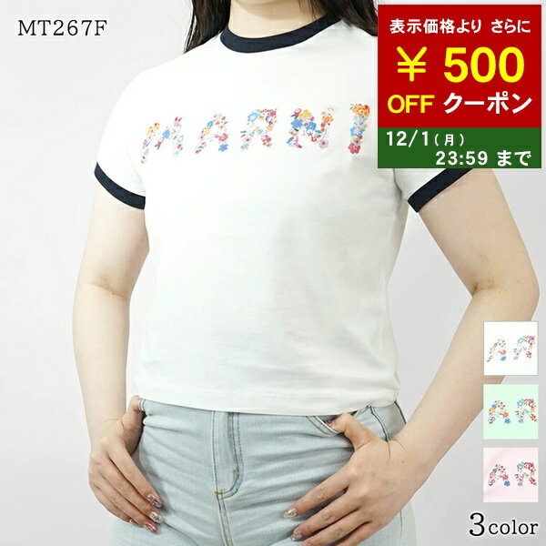 マルニ MARNI KIDS キッズ Tシャツ MT267F M01428 M00HZ ホワイト 0M100 ミントグリーン 0M851 ソフトピンク 0M347 半袖 カットソー クルーネック フラワーロゴプリント クロップド丈 ガールズ 女の子 レディース 大人着用可能 【プレミアムSTOCK-25SS】