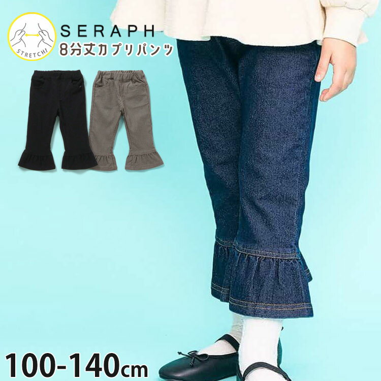【9~7割引き★周年祭企画】【メーカー価格2640円】seraph カプリパンツ 8分丈 裾切替 ストレッチ 女の子 キッズ 両ポケット付き ウエストゴム ロングパンツ ハーフパンツ ズボン ボトムス 子供服 セラフ 100 110 140 黒 S420045