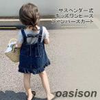 キッズワンピース 子供服 袖なし キャミソール 女の子 こども 夏 デニムワンピース デニム ポケット付き ジャンパースカート サスペンダー式