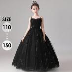 ロングドレス 子供ドレス キッズ ドレス パーティー お姫様 キャミソール ノースリーブ エレガント キラキラ ワンピース 子供ドレス ファスナータイプ 子どもドレス 女の子 ロング丈 フォーマル Aライン ステージ衣装 ピアノ 発表会 ブラック 黒 110 120 130 140 150