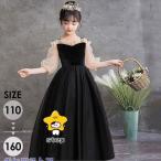 ピアノ発表会 ドレス 子供 キッズ ドレス パーティー お姫様 ロング丈 キャミソール ノースリーブ 肩出し エレガント キラキラ ワンピース ファスナータイプ 子どもドレス 女の子 ロング丈 フォーマル Aライン ステージ衣装 ブラック 110 120 130 140 150 da174g5g5x1