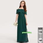 子供ドレス ワンピース ロング丈 オフショルダー キャミソール ピアノ発表会 子供 キラキラ 長袖 女の子 フォーマル グリーン
