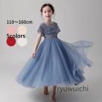 ドレス ワンピース ピアノ 子供 120 130 140 150 160 キッズ 入学式 可愛い 結婚式 演奏会 発表会 安い ロング 水色 半袖 おしゃれ 春 夏