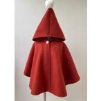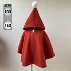 フード付きケープ 赤 キッズ 女の子 ポンポン付き マント コート かわいい 三角フード 防寒 秋冬 アウター クリスマス 衣装 イベント 仮装 お出かけ 防風
