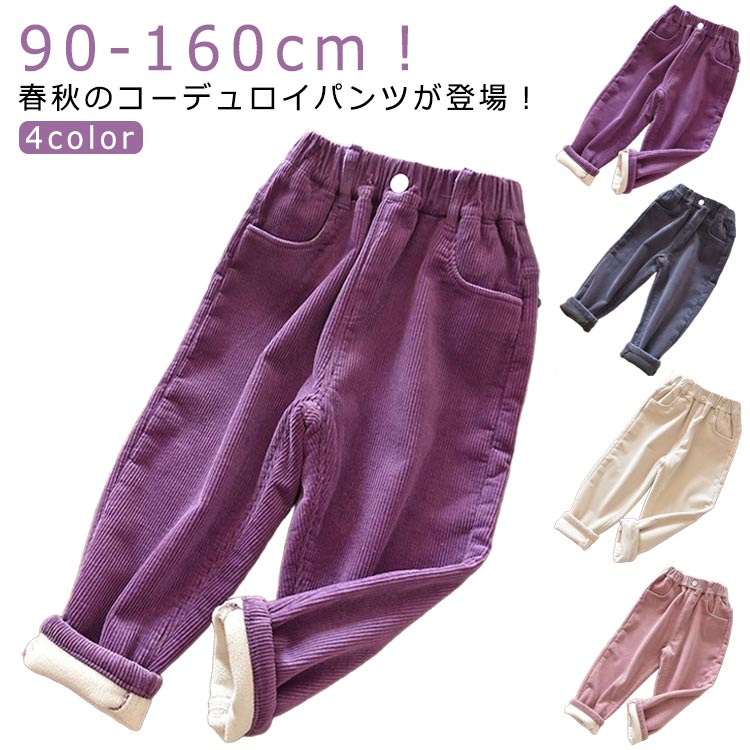 キッズ 裏起毛 コーデュロイパンツ 子供 男の子 女の子 110cm 120cm 130cm 140cm 150cm ウエストゴム ゆったり ぽっちゃり あたたか 冬 防寒 通園 通学 チャコール アイボリー ピンク パープル s0112