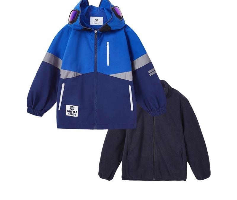 ジャケット 男の子 キッズ スリーインワン マウンテンパーカー ウインドブレーカー 防寒 防風 保温 フード付き ゴーグル付き ジップアップ ポリエステル 通学 アウトドア 普段使い 黄 宝藍 秋冬