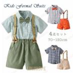 男の子 スーツ 半袖 子供スーツ 夏 入園式 入学式 4点セット チェック柄 おしゃれ サスペンダー 発表会 結婚式 お宮参り 卒業式 七五三 初節句