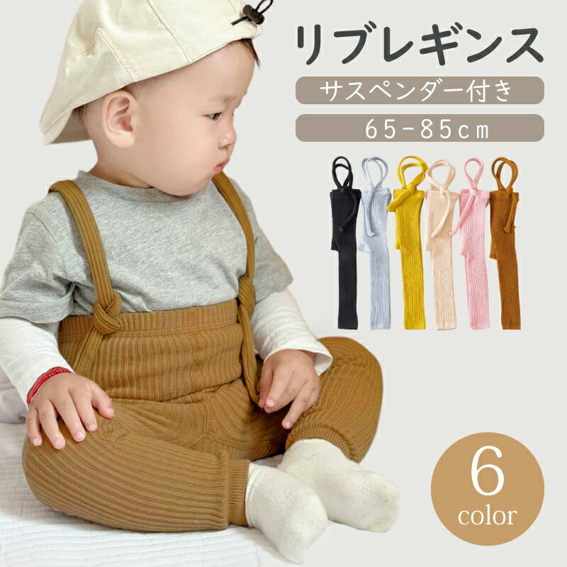 ベビー レギンス スパッツ 赤ちゃん サスペンダー サロペット ベビー服 キッズ ストラップ タイツ 80 女の子 男の子 可愛い おしゃれ パンツ リブ 90 95 100