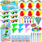 【並行輸入品】プールパーティーの記念品や夏のパーティーの記念品、パーティーバッグの中身78点。ビーチボール、キッズサングラスバルク、バブルワンド