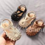 キッズ サンダル 女の子 編み込み つま先保護 マジックテープ式 子ども 子供 子ども靴 ラインストーン ベルト アウトドア スポサン ジュニア 軽量 かわいい
