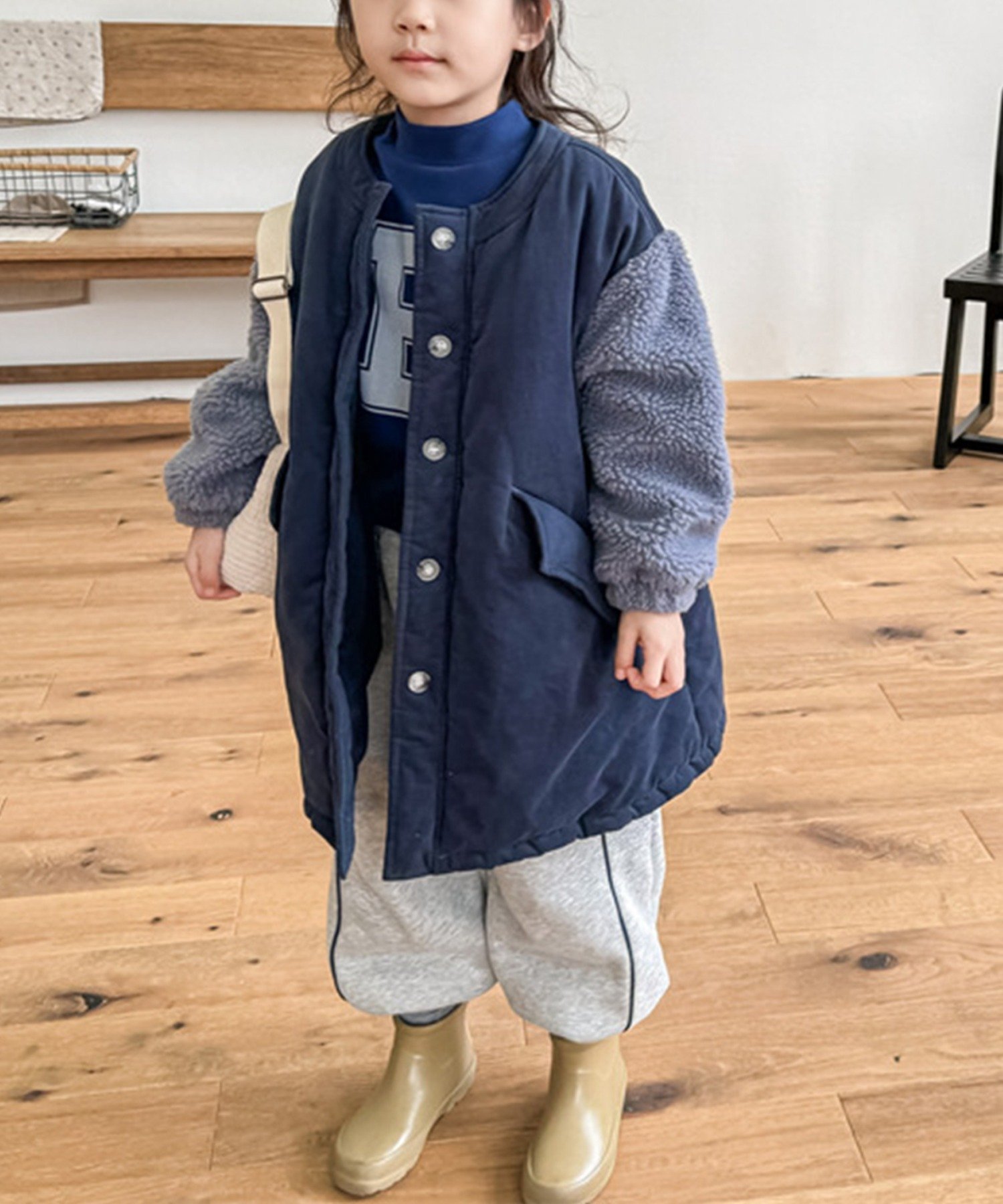 【SALE/75%OFF】aimoha KIDS 【aimoha-KIDS-】ボア切り替え中綿ジャケット アイモハ ジャケット・アウター ダウンジャケット・ダウンベスト ベージュ ブルー