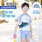 水着 キッズ水着 半袖シャーク柄トップス+ショートパンツ+スイムキャップ 3点セット キッズ 子供 男の子