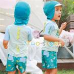 水着 キッズ水着 マリン柄半袖ラッシュガード+ショートパンツ+スイムキャップ 3点セット キッズ 子供 男の子