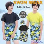 ジュニア 水着 男の子 セパレート 半袖 キャップ付き 3点セット 日やけ防止 水着 キッズ 子供 ショートパンツ ダイビング リゾート 学生用 プール 紫外線対策