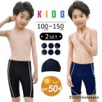 スクール水着 ハーフパンツ スイムキャップ 2点セット キッズ 男の子 子供 小学生 ジュニア 裏地付き 学校 プール 夏 黒