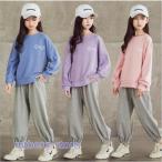 【1/29 01:59まで 50%OFF】キッズ ダンス 衣装 2点セット トレーナー ロング パンツ スウェット 上下 セット【長袖 スウェットパンツ セットアップ 大きめサイズ ジュニア 裏毛 ユニセックス B系 K-POP ヒップホップ HIP HOP 原宿 韓国 ファッション 男の子 女の子】