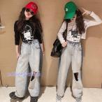 キッズ ダンス 衣装 セットアップ デニムパンツ ダメージパンツ へそ出し ガールズ 女の子 tシャッツ トップス ベスト ヒップホップ 発表会 韓国 かっこいい