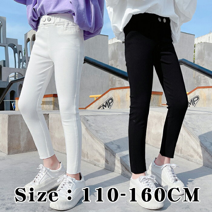 【送料無料】スキニーパンツ キッズ パンツ キッズ 女の子 ストレッチパンツ キッズ ロングパンツ キッズ ズボン 女の子 長ズボン 春秋 ストレートパンツ チノパン 黒 ホワイト シンプル カジュアル ボトムス 美脚 無地 細身 子供 女児 通園 通学
