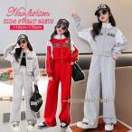 セットアップ 女の子 スウェット キッズ 子供 ガールス トレーナートップス ワイドパンツ ジャケット パンツ 裏起毛 体型カバー ブラック レッド 春 秋 冬