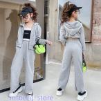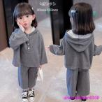 ジャージ 女の子 幼児 セットアップ ゆったり 春秋 長袖 長ズボン 上下セット キッズ ガールズ フード付き スウェット ワイドレッグパンツ 無地 レジャー 80-130