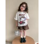 キティ ヒョウ柄 キッズ服 Tシャツ 半ズボン 子供 服短パン 上下セット カジュアル 韓国風 夏 半袖 オシャレ ハワイイ 海