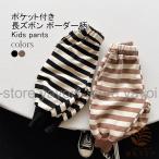 長ズボン キッズ ロングパンツ 配色 ボーダー柄 リブ裾 ストレート ウエストゴム ポケット付き ゆったり 動きやすい 脚長効果 春秋