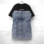 ワンピース 子供服 女の子 キッズ 半袖 フェイクレイヤード デニム チェック柄 トップス