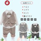 キッズ フォーマル スーツ 楽天 蝶ネクタイ付き 3点セット シャツ ベスト パンツ 男の子 タキシード風 チェック柄 ベビー服 ベビー 子供服 子供 キッズ 結婚式 入園式 七五三 お宮参り 卒園式