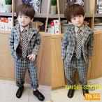 子供服 フォーマル 格子柄 スーツ 入学式 男の子 タキシード キッズ 結婚式 発表会 卒園式 ジュニア 80 90 100 110 120 130 140 150