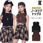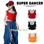 オフショルタンクトップ キッズ ダンス衣装 トップス ガールズ ヒップホップ ファッション 肩出し へそ出しトップス 韓国 K-POP 赤 黒 オレンジ